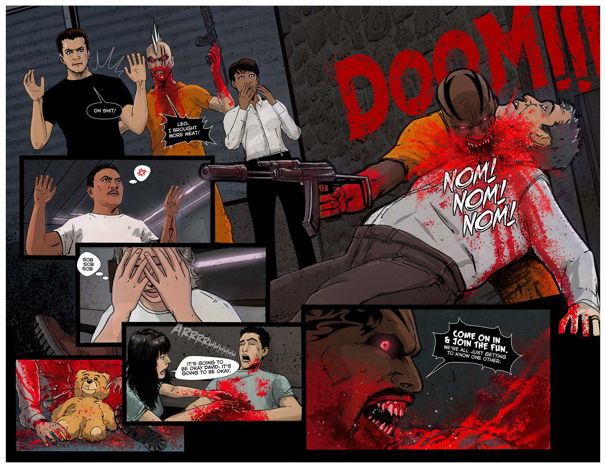 The graphic novel and live-action feature film sets the stage for a night of carnage, while the video game puts players in the middle of the storm. Players can fight for survival as resourceful Humans or Vampires, dominate as a blood-crazed Feeders, or unleash primal fury as a vicious Fang.